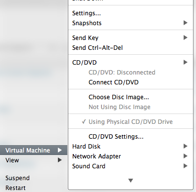 Insert your OS X installation CD into your Windows VM (not the Mac, the DVD seems to be dual-format and has some partitions that only show up in a Windows host) you can do this via the virtual machine CD/DVD menu in Fusion as shown below