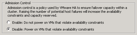 I clustered all the virtual ESXi instances into a single DRS/HA cluster (turning off admission control as we will be heavily oversubscribing the resources of the cluster and this is just a lab/PoC setup