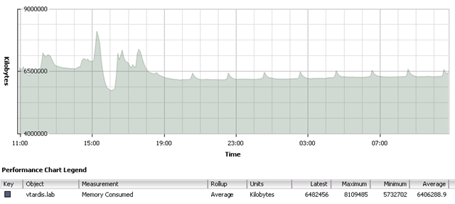 I’ve not done anything with my home ESX server this week as I’ve been busy with work; so this will be interesting – it’s been powered up all the time with all the VM’s spinning; but not doing very much.