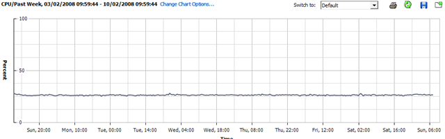It’s also interesting to note that I added 4 Windows 2003 VM’s last night but that hasn’t actually increased the overall CPU average – ESX must be quite efficient at time-slicing all those idle VMs.