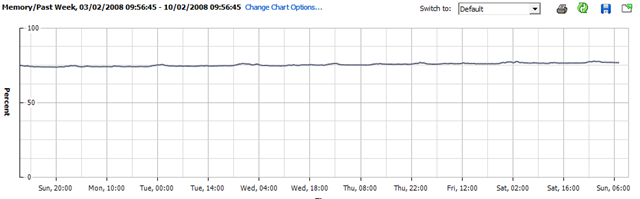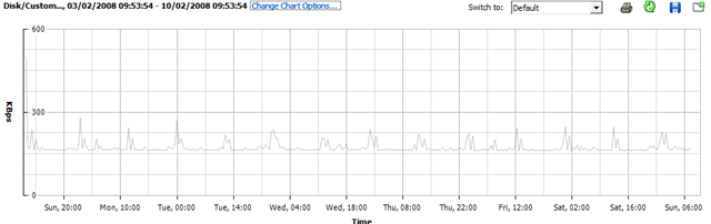 I thought I’d post some performance graphs from my cheap HP D530 ESX server using the Virtual Centre console (which incidentally, is good for getting this info quickly and simply).