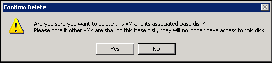 Please note if other VMs are sharing this base disk, they will no longer have access to this disk.