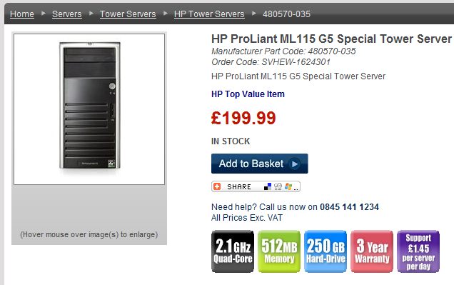 Linkage to Servers Plus £199 +VAT servers here (www.serversplus.com) if you tell them vinf.net or techhead.co.uk sent you they may cut you a deal on delivery as they have done in the past (no promises as I’ve not had a chance to speak to them).