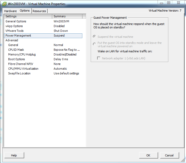 Also, worth noting that if you are attempting to build a vTARDIS with nested ESXi hypervisors you cannot use DPM within any of your nested ESXi nodes, the virtual NICs (e1000) do support WoL with some other guest-types like Windows, so your VM guests can respond to WoL packets (via the following UI screens)