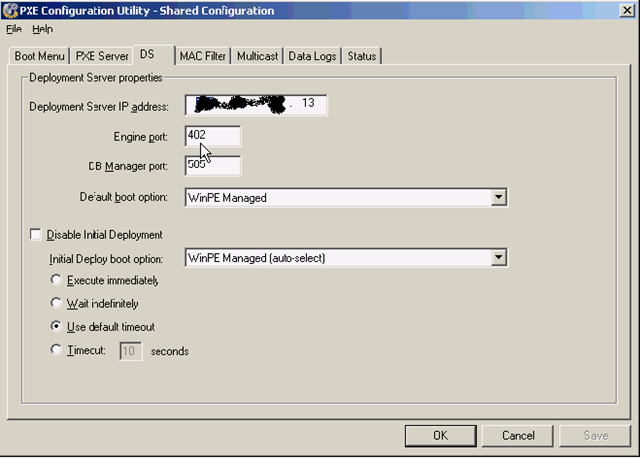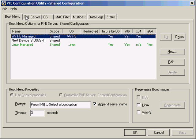 The followign screens show a working configuration from the RDP 3.80 PXE Configuration Manager