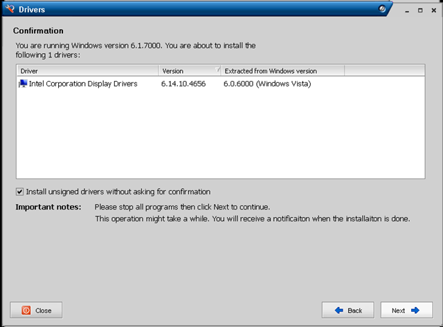 In the end I came across a post suggesting that I use an application called DriverMax – this is capable of exporting and importing installed drivers, I’d not tried it before but decided to give it a go, I know Vista had a working 855GM driver so the plan was to export it from there, and import it into a Windows 7 installation as I was unsure of how to extract it from the Vista installation media.