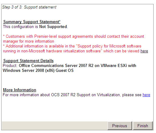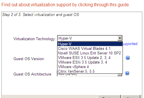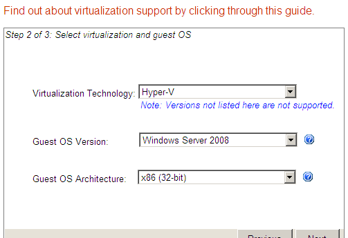 A colleague has just made me aware of a new tool on the Microsoft website, it is a wizard that can tell you if specific Microsoft App/OS/Architecture combinations are supported under the SVVP (Server Virtualization Validation Programme) – I previously wrote about the SVVP here, which promised to resolve many of the pains we were experiencing.