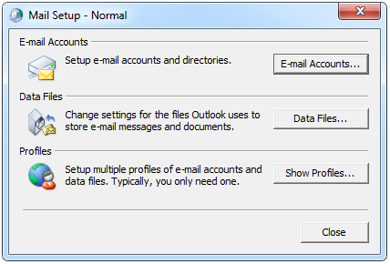 If you want to try it out for yourself you need to totally quit Outlook (it won’t work if you have it open), go into Control panel and find the “mail” control panel applet