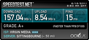 This page is to track the speed/quality of the 100Mbps broadband service I have from Virgin Media in the UK.