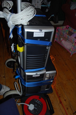 The photo below shows the demo kit we used for the London meeting cunningly strapped to a B&Q trolley for “portability” 🙂